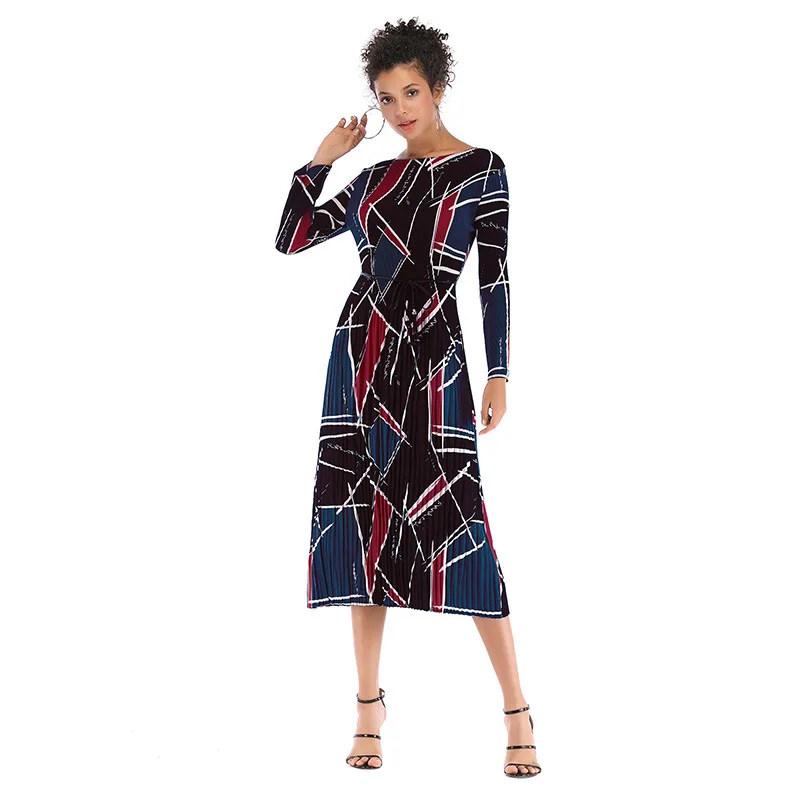 Images of Long sleeve pleated skirt in new printed chiffon dress in summer 2020 summer dress dresses woman party night plus size :