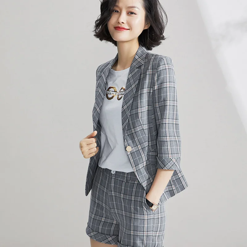 Sale Pink Female Office Work Women's Formal Short Pant Suits Business Lady Uniform 2 Piece Set Blazer Trouser Jacket Suits Plus Size
