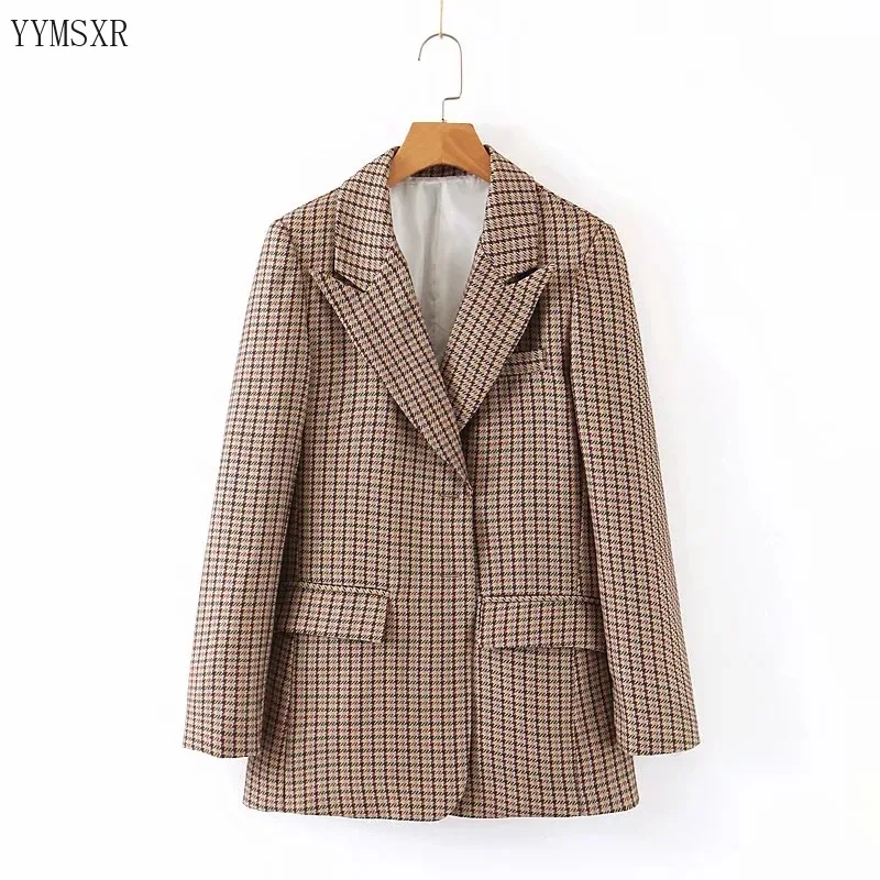 Promo Elegant checked ladies blazer small suit 2020 new spring and autumn retro single-breasted ladies jacket coat Casual top