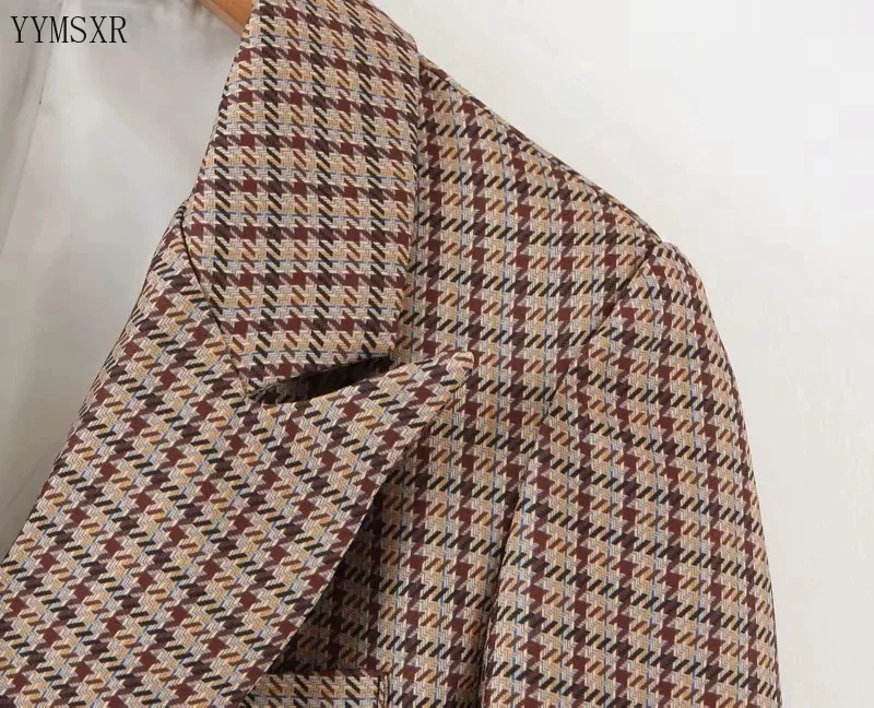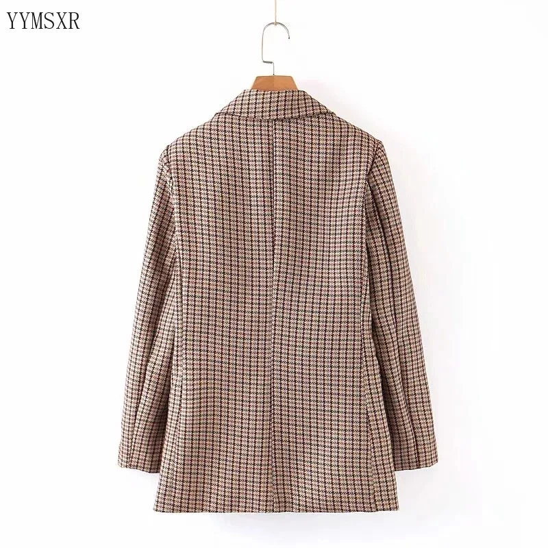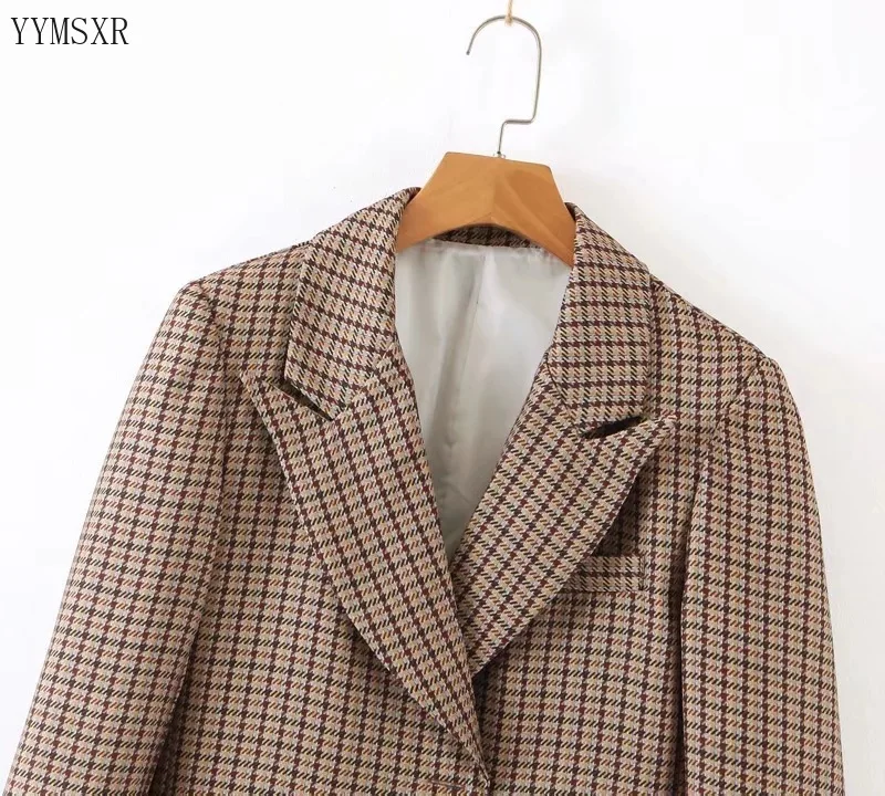 Images of Elegant checked ladies blazer small suit 2020 new spring and autumn retro single-breasted ladies jacket coat Casual top :