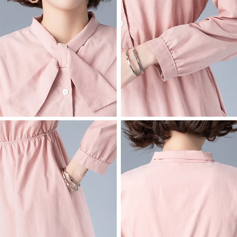 Images of 2020 Spring Literary Comfortable Cotton Solid Color Knee Length Dress Empire Elegant Women Flare LongSleeve Dress Party Vestidos :