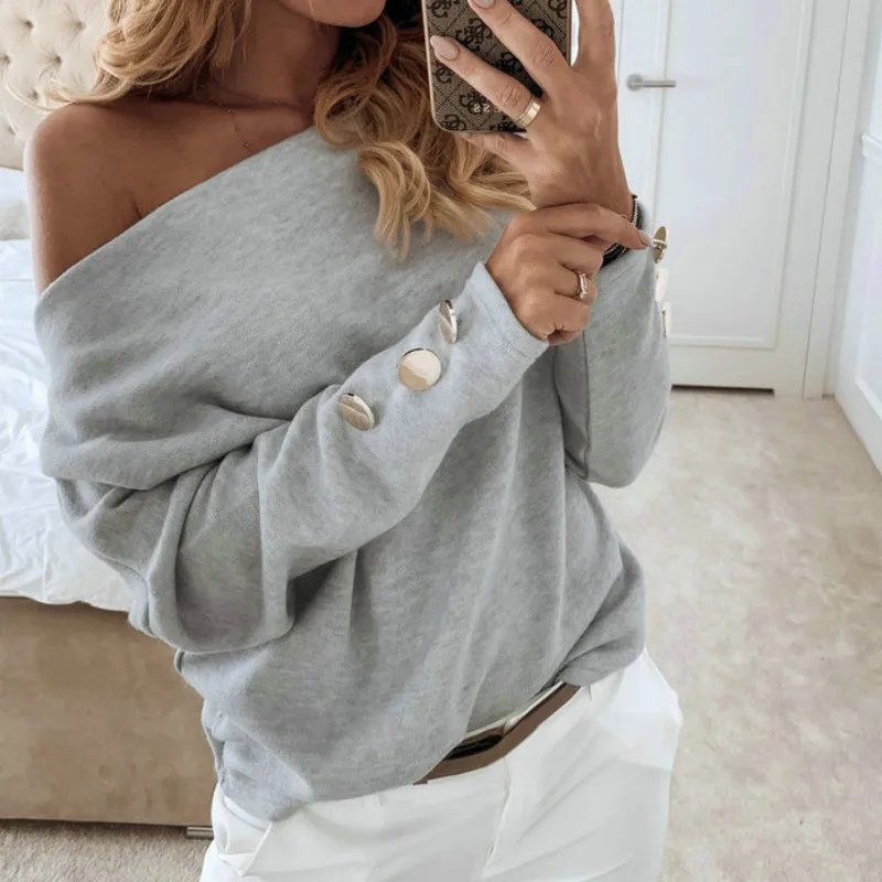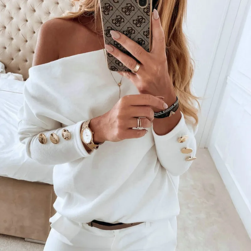 Images of 2019 Sexy Off Shoulder Tops and Shirt Sexy Off Shoulder Long Sleeve Solid Color Women Blouse Fall Clothing :