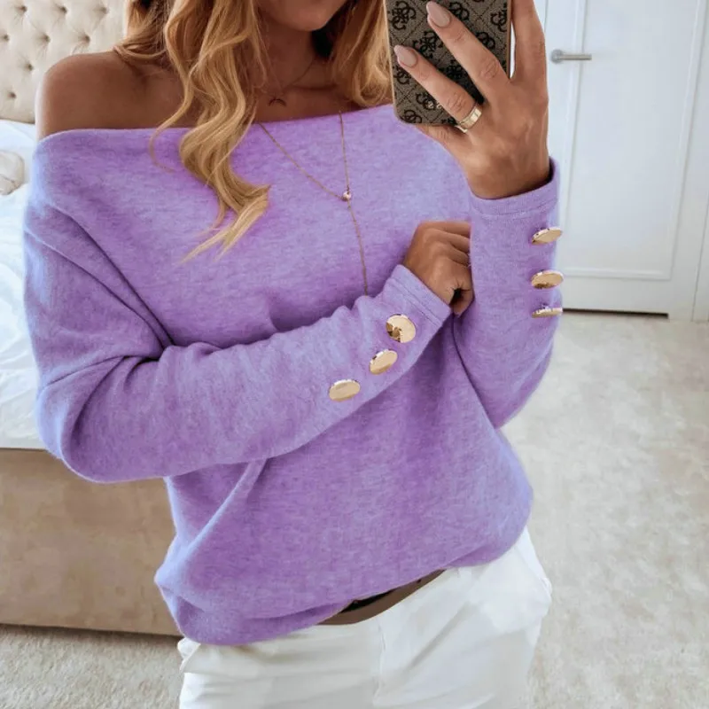 Promo 2019 Sexy Off Shoulder Tops and Shirt Sexy Off Shoulder Long Sleeve Solid Color Women Blouse Fall Clothing