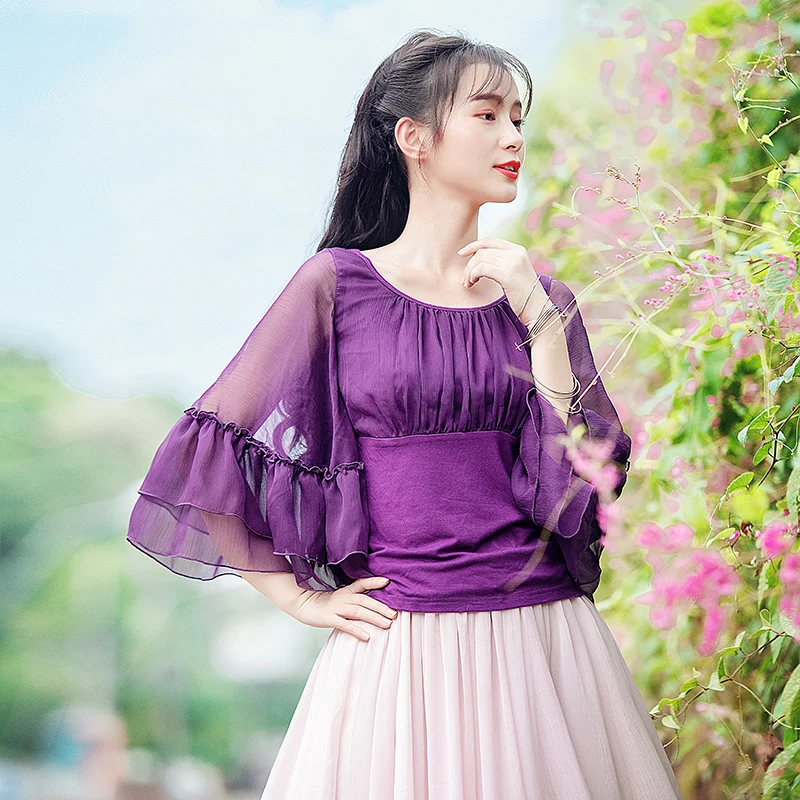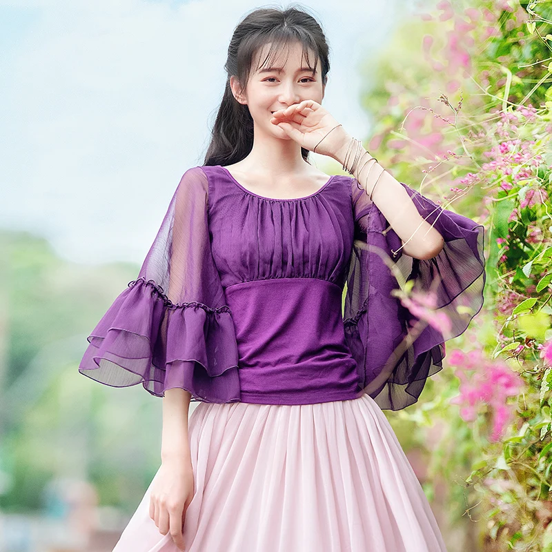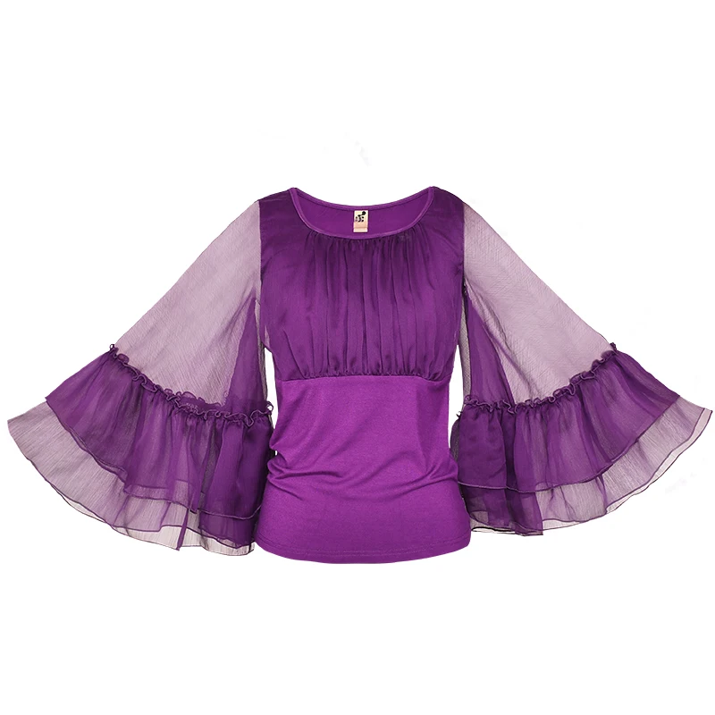 Images of Free Shipping Boshow 2019 New Fashion White Shirts For Women Flare Sleeve Chiffon Cotton Blouses Tops S-L Spring And Autumn :