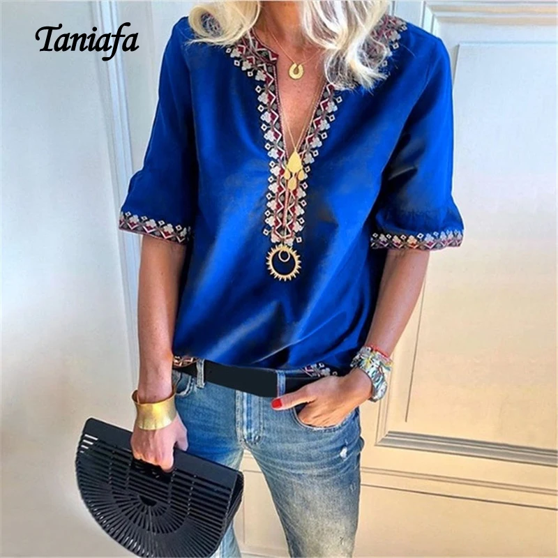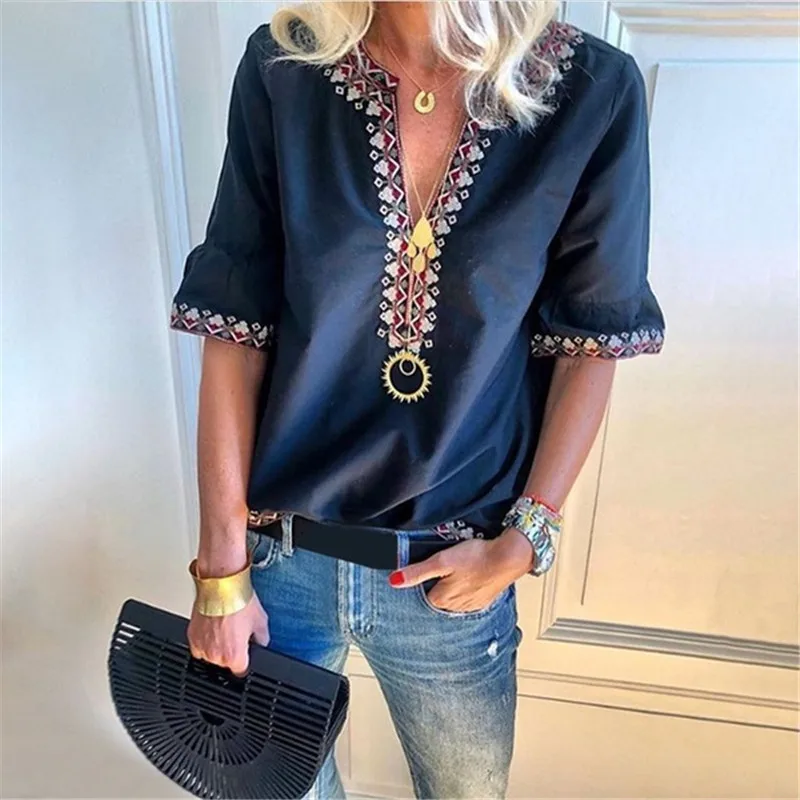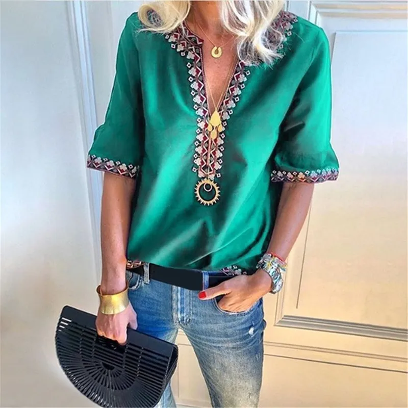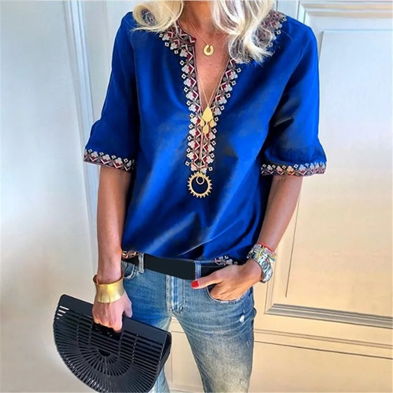 New New Fashion Women V Neck Short Sleeve Shirts Lady Summer Casual Loose Tops Plus Size Blouse