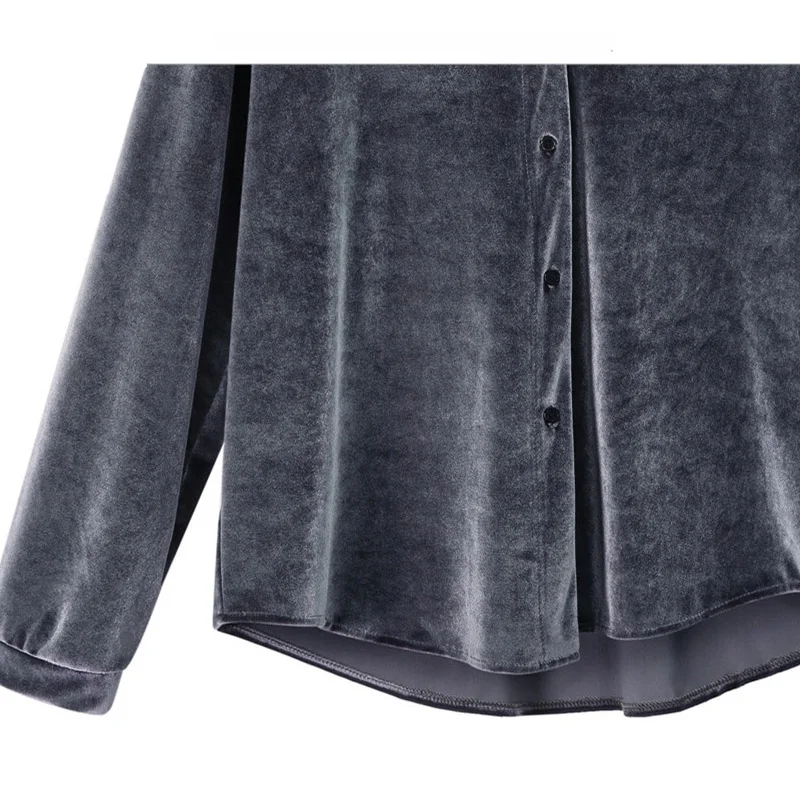 Buy Womens Tops and Blouses Velvet Super Soft Turn-dowm Collar Long Sleeve Shirt Loose Ladies Shirts blusa feminina plus size