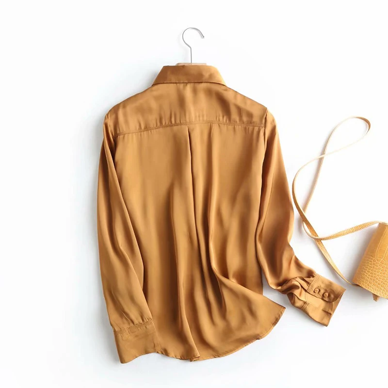 Images of 2019 za shirt women silk casual office wear blouse solid satin elegant womens tops and blouses chic retro ropa mujer :