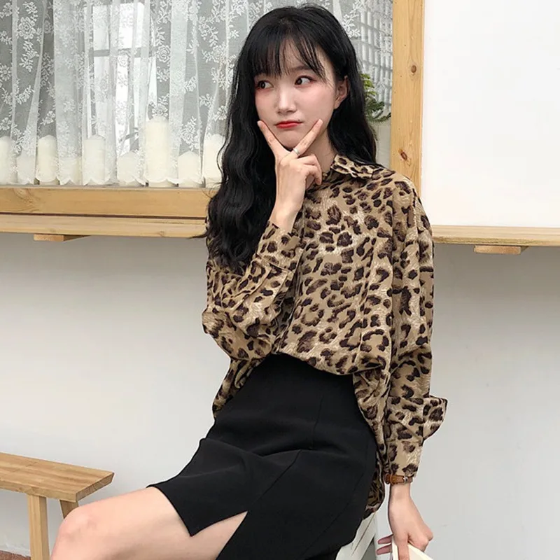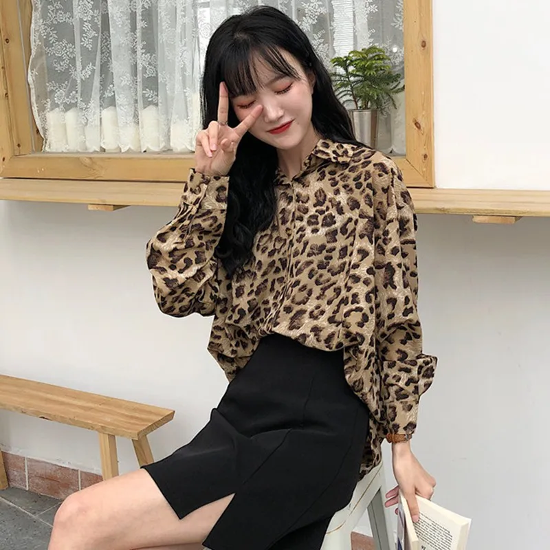 Promo Drop Shipping New Sexy Women Leopard Blouses Tops Turn-down Collar Long Sleeve Casual Loose Blouse Tops Blusas Female