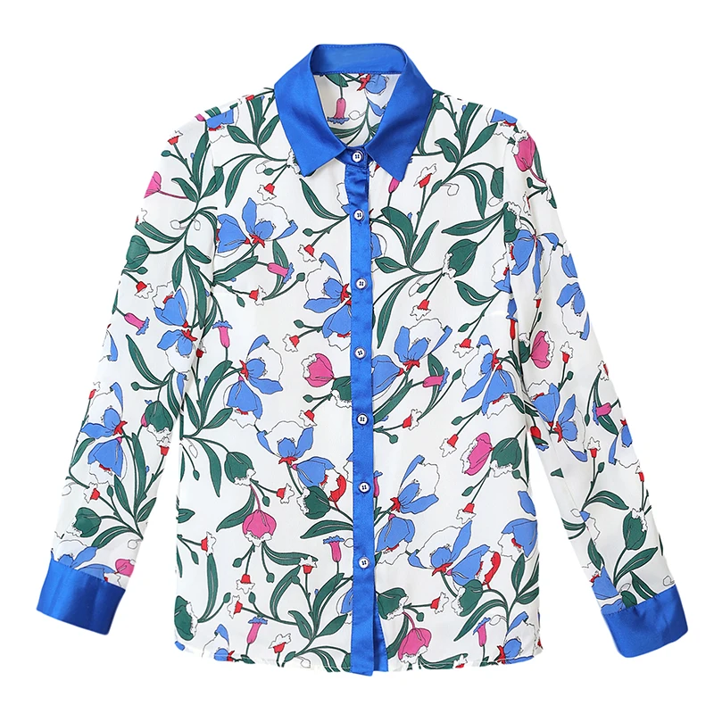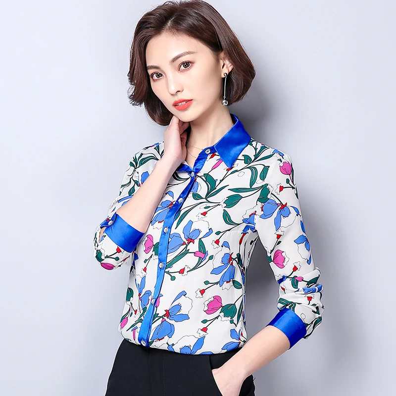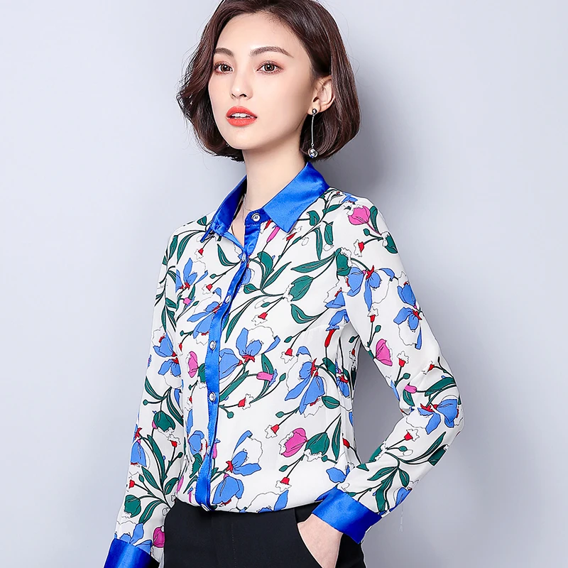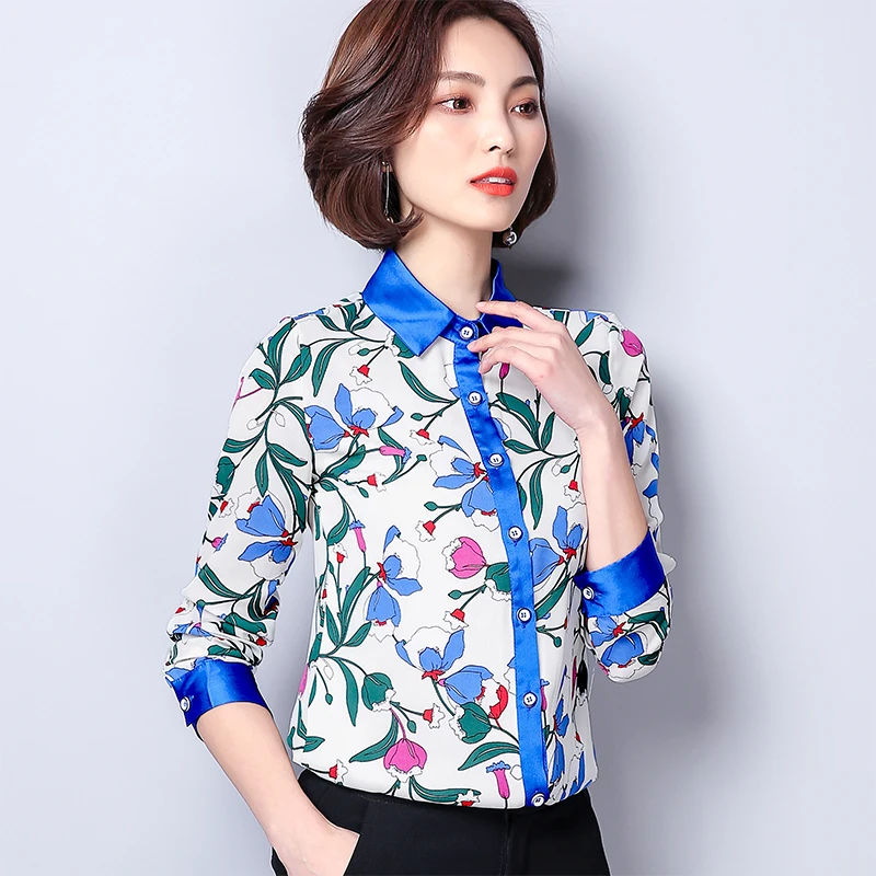 Sale Print Satin Chiffon Blouse Women Long Sleeve Casual Plus Size Floral Female Shirt Korean Turn-down Collar Ladies Tops Girl Tunic