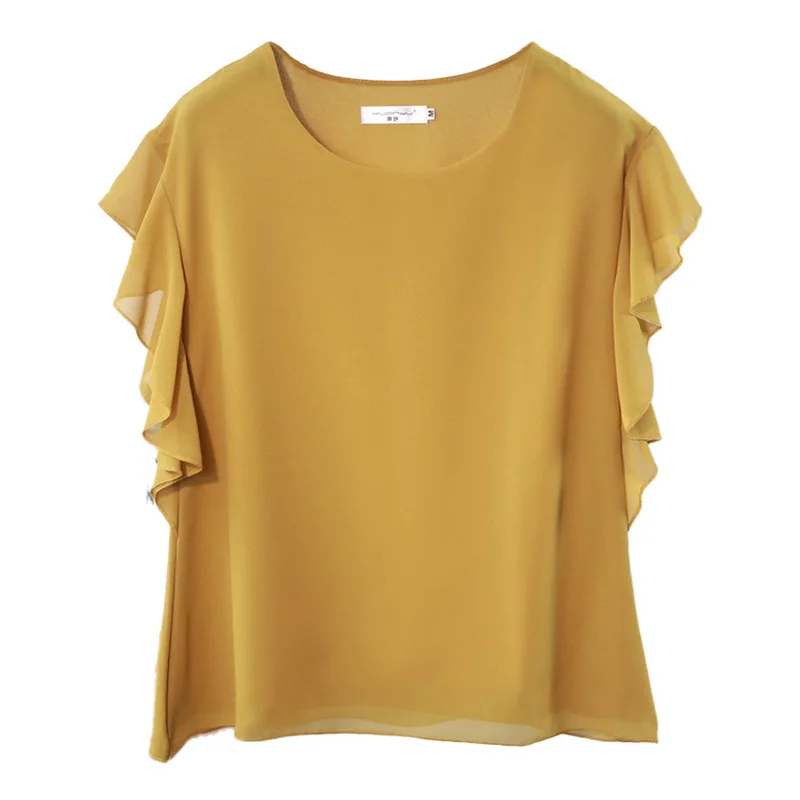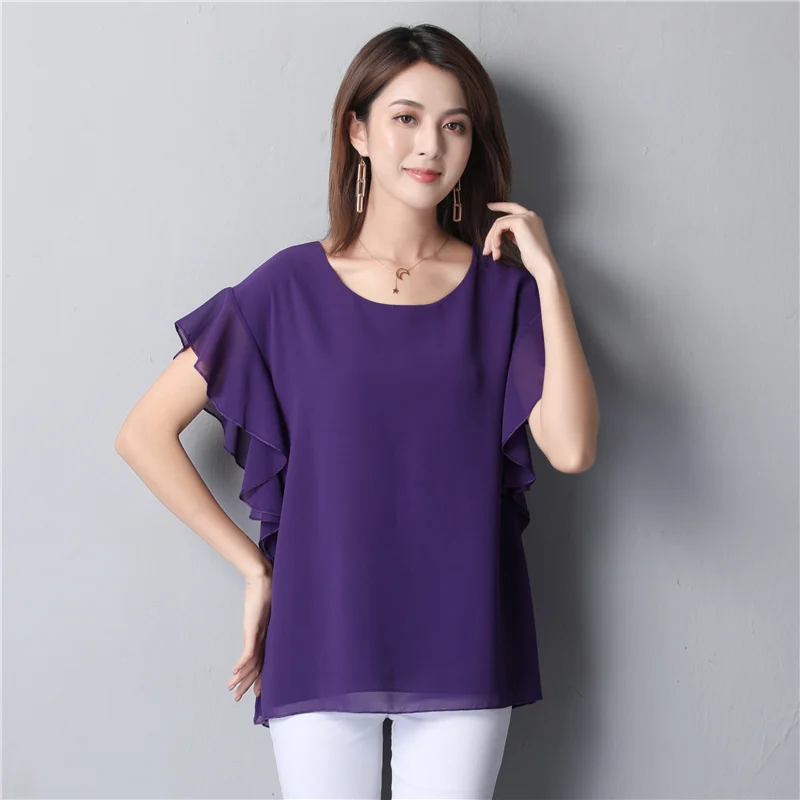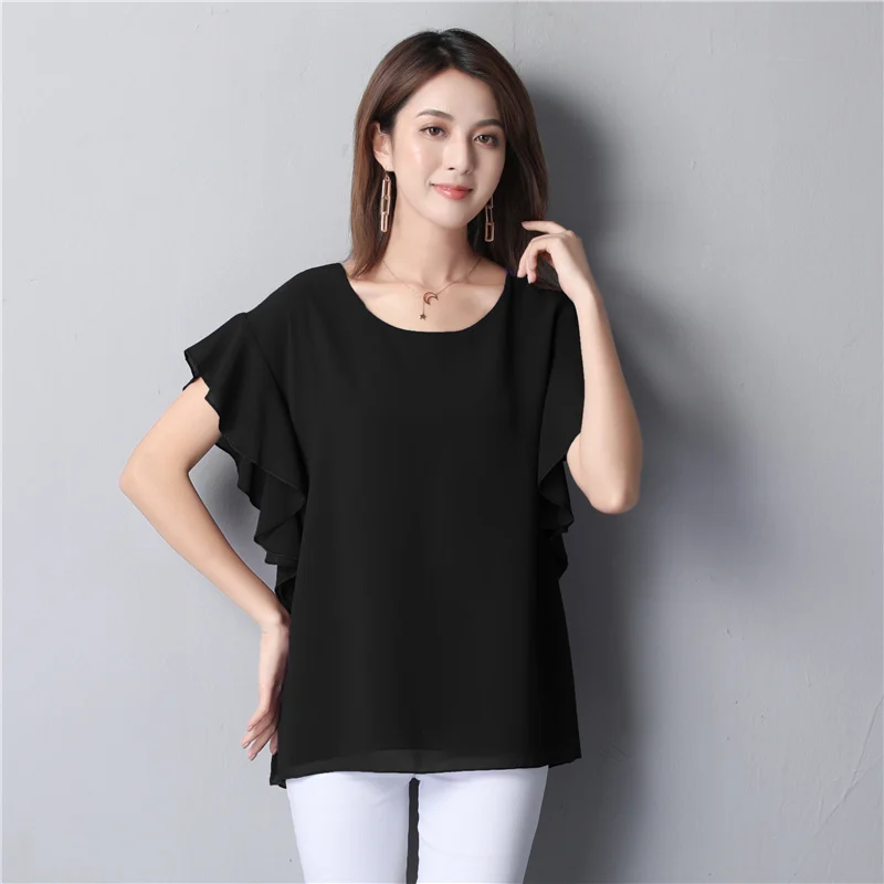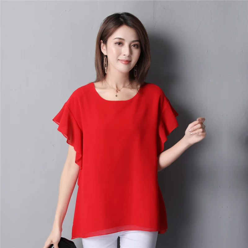 Images of YUANYU New arrival Women Chiffon Blouse 2019 Summer Beach Loose Short sleeve Blouse Casual O-Neck Plus Size Female Fat Tops :