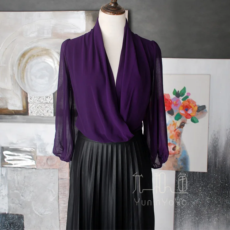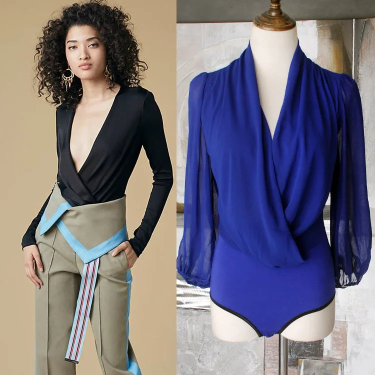Images of YUNINYOYO so fashion and sexy cross double-breasted women jumpsuits 3 colours silk Long sleeves and viscose Clothes body :