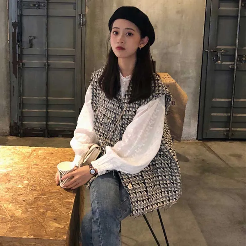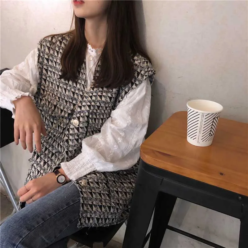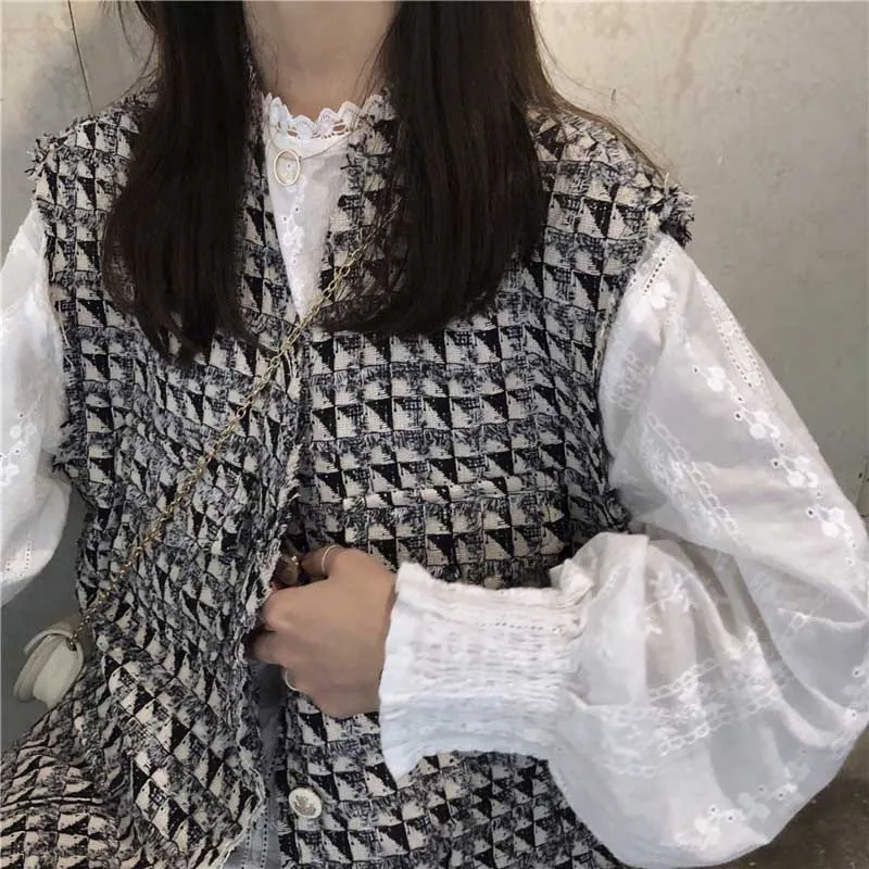Get this Autumn Top Clothes Women Tweed Vest Jacket + Long Sleeve dress Women's Small Fragrant Wind Sets Girl Student Tops with limited time discount by pressing the button below