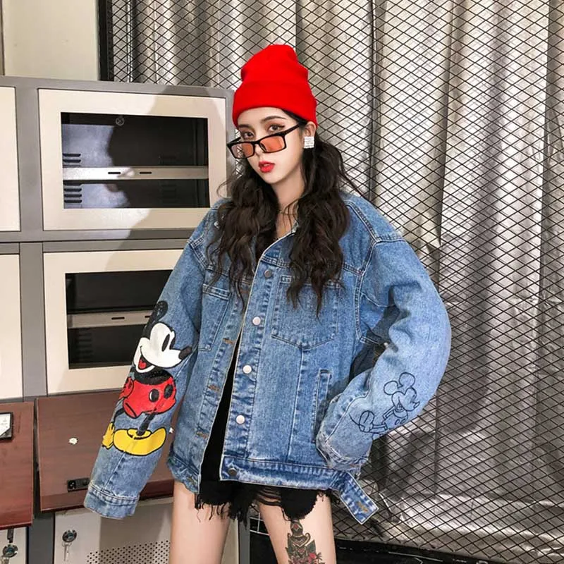 Buy Autumn retro port wind denim jacket female short paragraph 2019 new Korean version the loose wild sequin jacket denim oversize