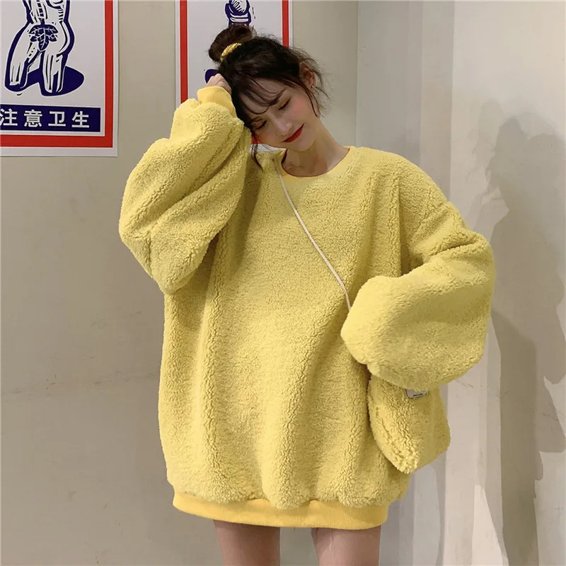 Images of Thicken Women Hoodies with Bags Oversized Sweatshirt Woman Pullovers Tops Artificial Lamb Hoodies Trendy Female Pullovers Top :