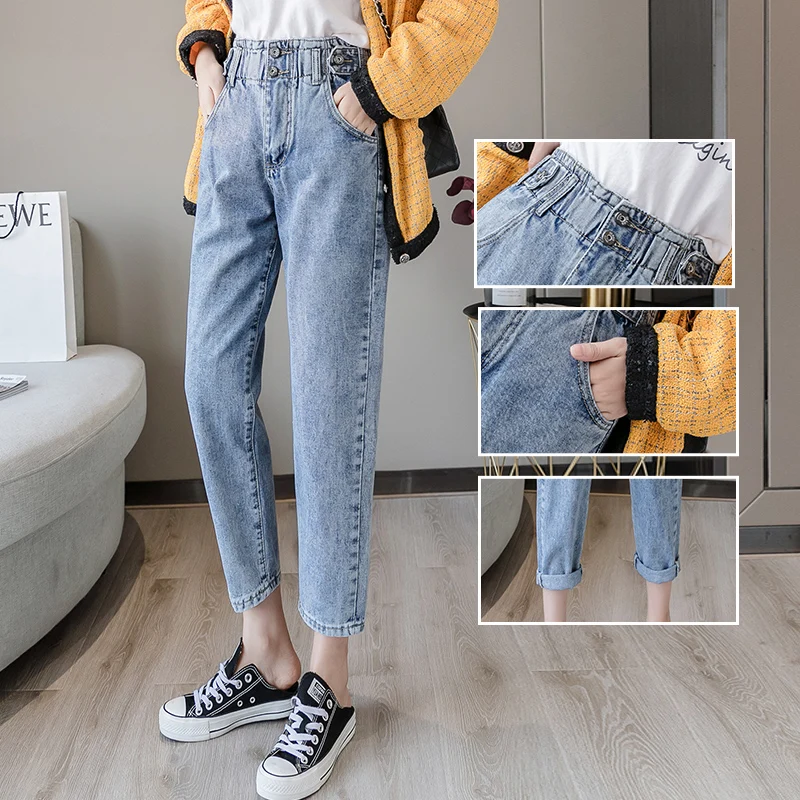 Images of Jeans Woman Casual Harem Jeans Streetwear Denim Pants Trousers Slouchy Jeans Elastic waist Skinny slim Fit High Quality Jeans :
