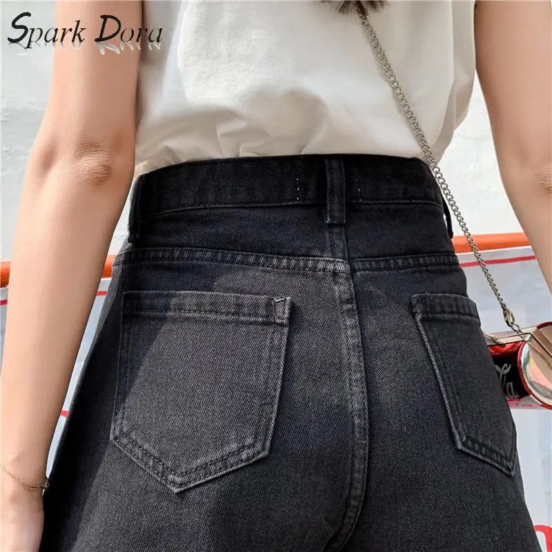 New SparkDora 2020 Women Denim Shorts Plus Size S-2XL Spring Summer Button Fake Two Pieces High Waists Lined Short Jeans Harem