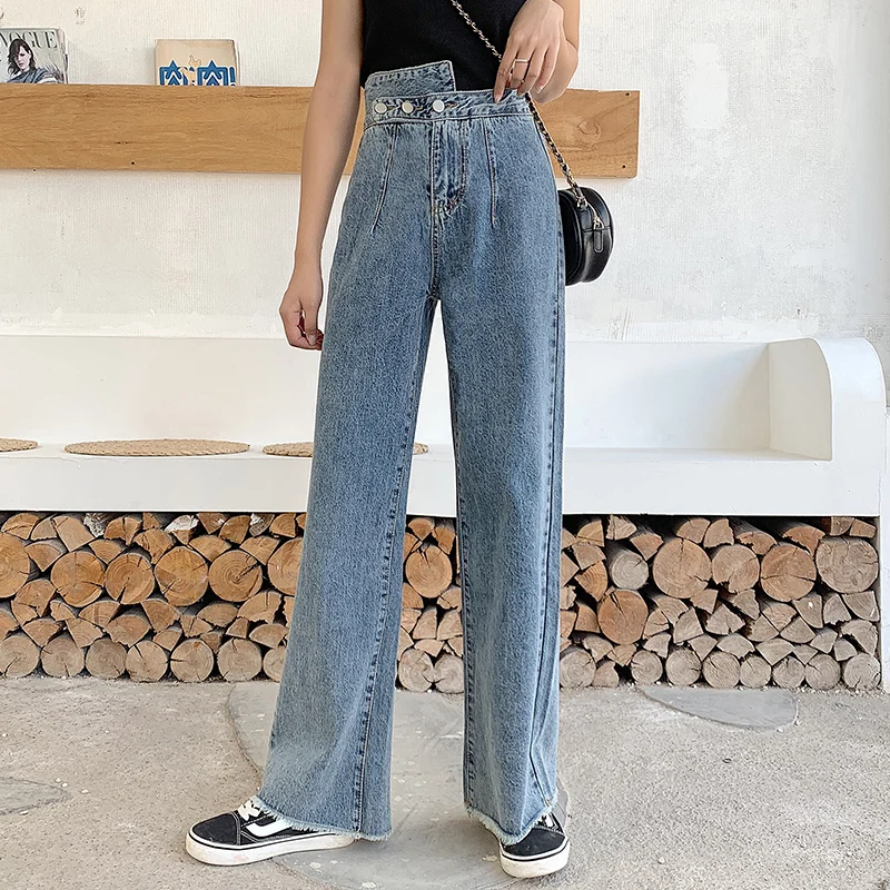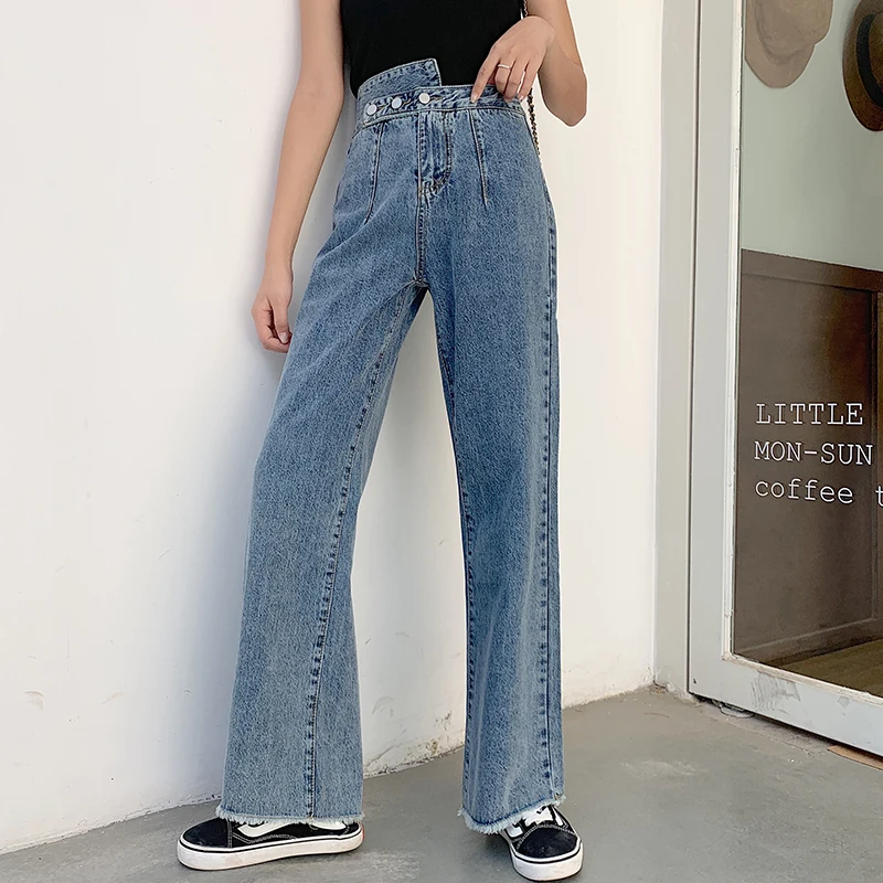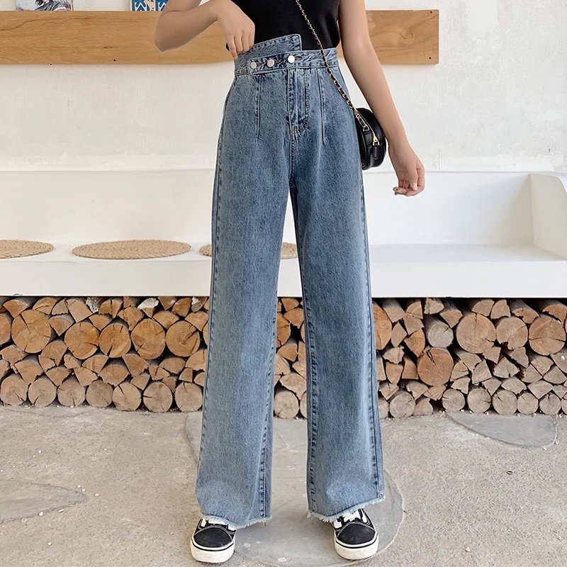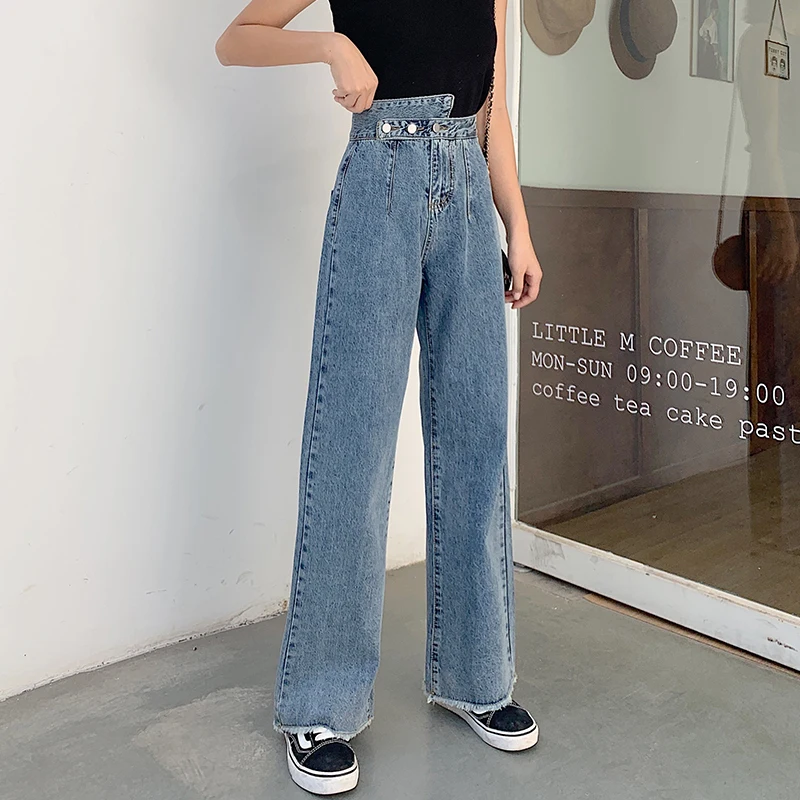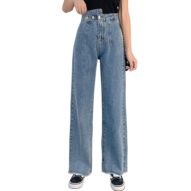 Buy Woman Jeans High Waist Clothes Wide Leg Denim Clothing Blue Streetwear Vintage Quality 2020 Fashion Harajuku blue Straight Pants