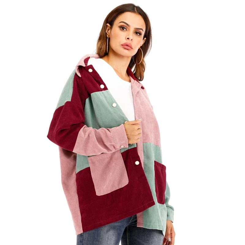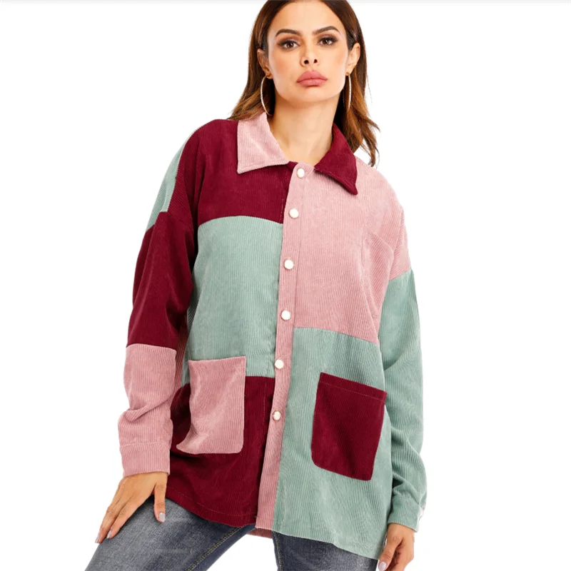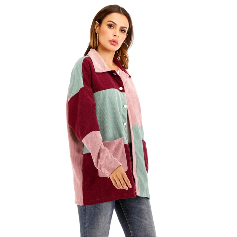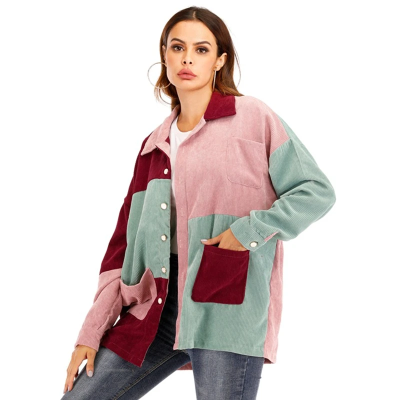 Promo 2020 Spring Women Coat New Color Matching Corduroy Jacket Fashion Shirt Women Single Breasted Thin Coat