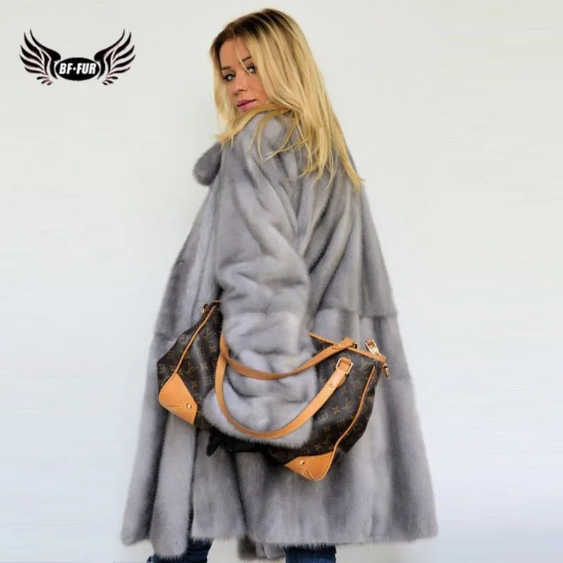 New BFFUR 2019 New Arrival Genuine Mink Fur Outerwear Women Winter Coat Slim Solid Casual Jacket Ladies Leather Clothing Gothic Coat