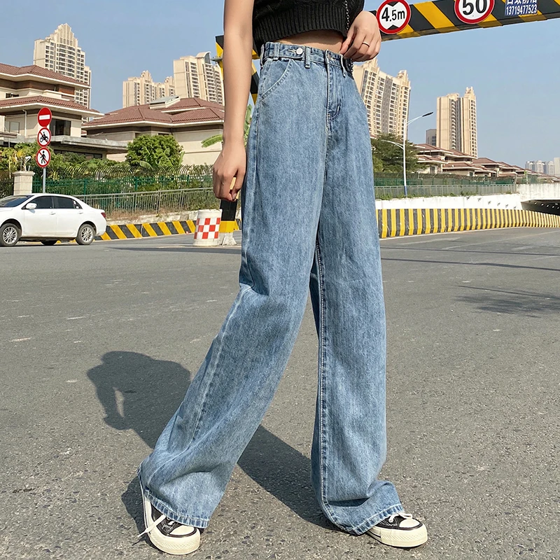 Sale Fashion Jeans Woman Waist Slim Mom Jeans Woman Plus Size Cylinder High Waist Wide Leg Loose Jeans Mop Design Jeans blue Retro