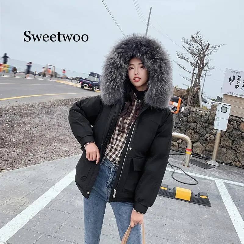 Images of New 2019 High Quality Winter Jacket Women Plus Size Winter Coat Hooded Warm Fur Collar Cotton Padded Long Parkas For Women :