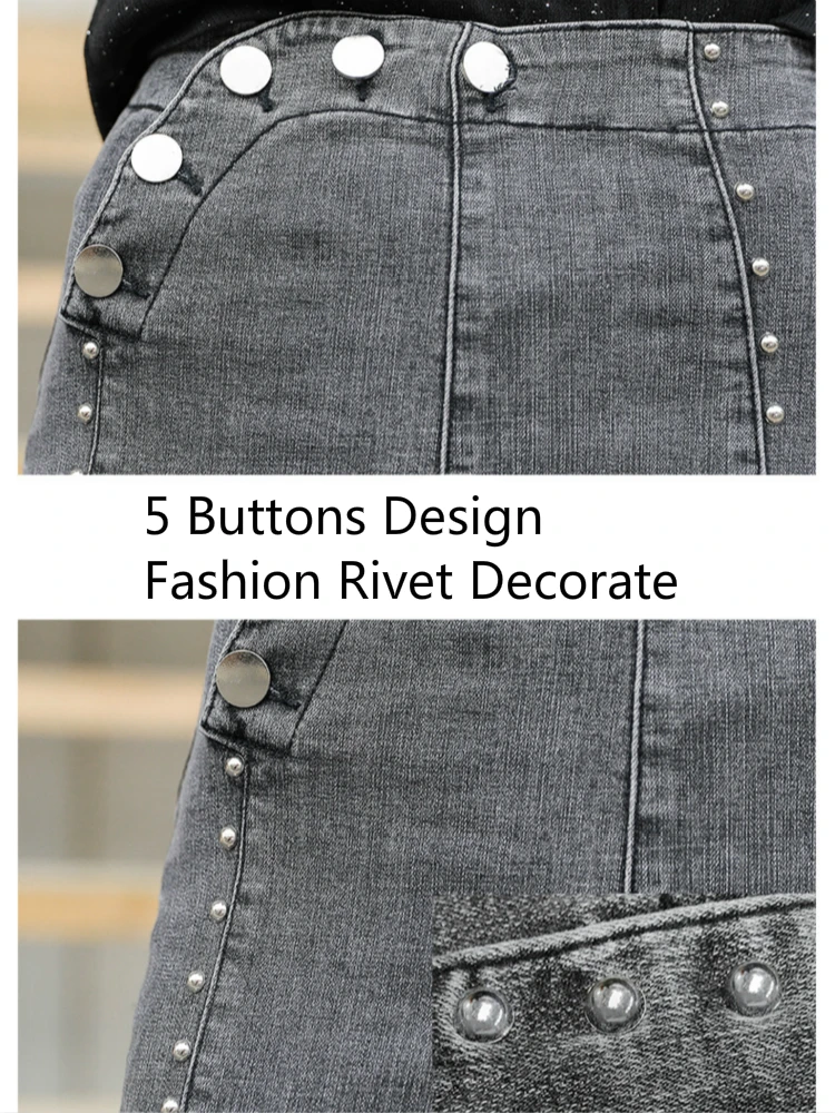 Best Offer Women Winter Jeans Pants with Fleece Linning Punk Rivets Elastic Skinny Thick Denim Pencil Pants High Waist Ladies Jean Pants