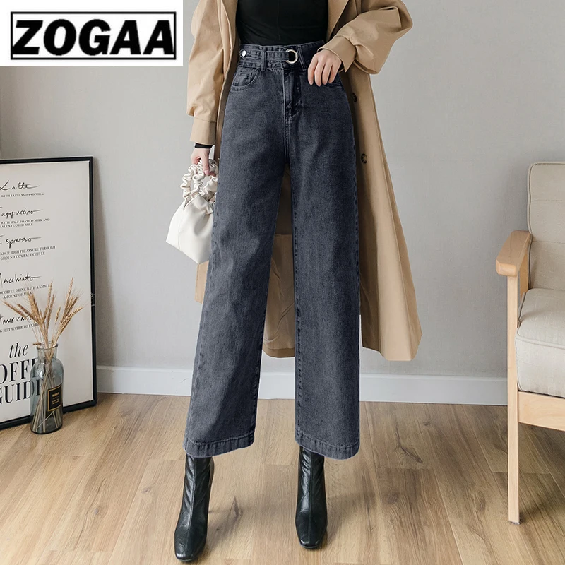 Images of ILARES Jeans Woman Mom Jeans High Waist Denim Ladies Plus Size Jeans OL Straight Wide Leg Womens Jeans Denim Flare Winter Pants :