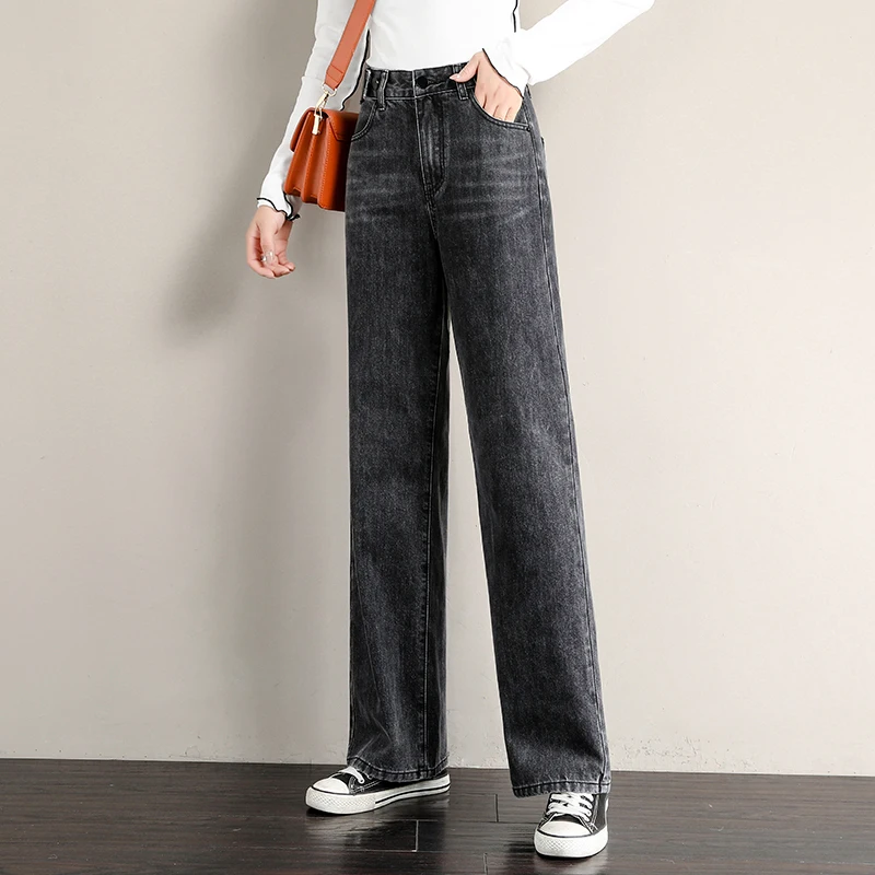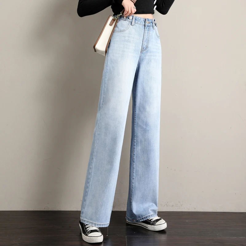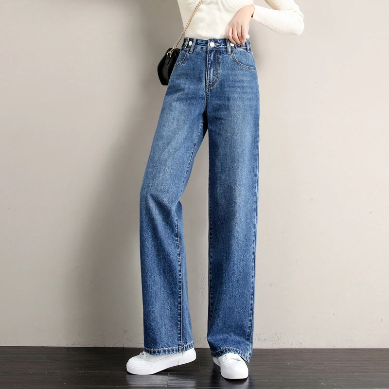 Images of Korean Style All-match Full-length Women Jeans For Women Blue Jeans Pants Harajuku Denim Harem Pants High Waist Ladies Wide Leg :