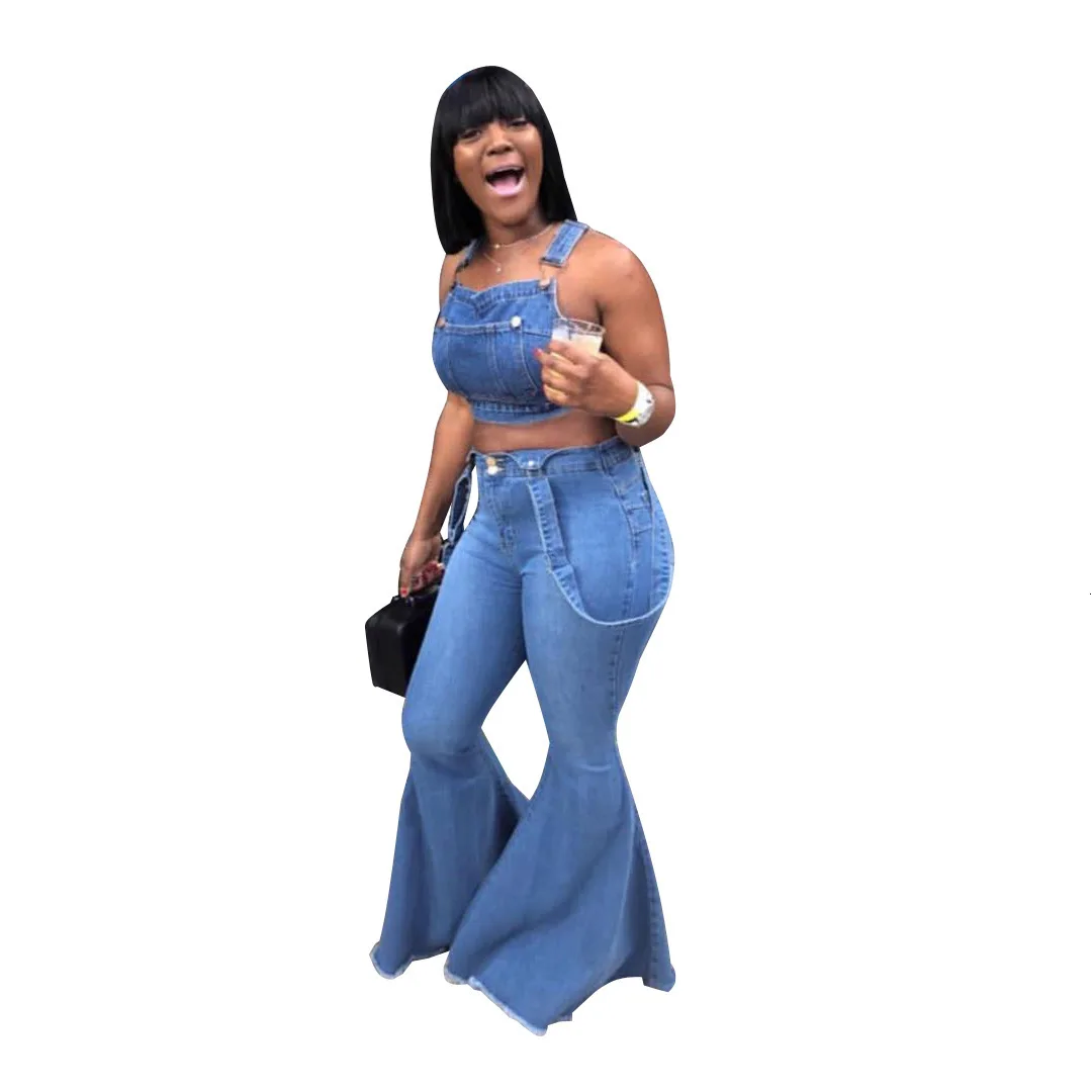 New Suspender Flare Jeans For Women High Waist Bell Bottom Overall Denim Pants Female Hip Push Up Jumper Plus Size Wide-Leg Trousers