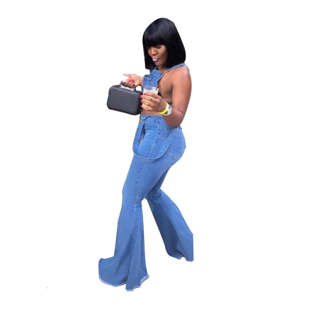 Get this Suspender Flare Jeans For Women High Waist Bell Bottom Overall Denim Pants Female Hip Push Up Jumper Plus Size Wide-Leg Trousers with limited time discount by pressing the button below