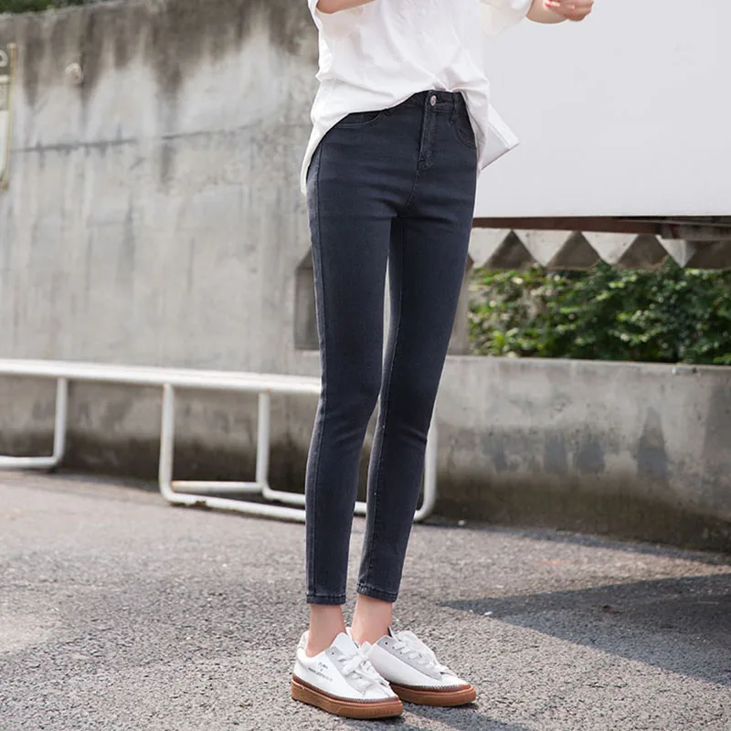 Images of 2020 New girl Pants High Quality Slim Pants Buttons Zip Ankle Pants High Waist Daily Fashion Black Blue Gray Tight woman pants :