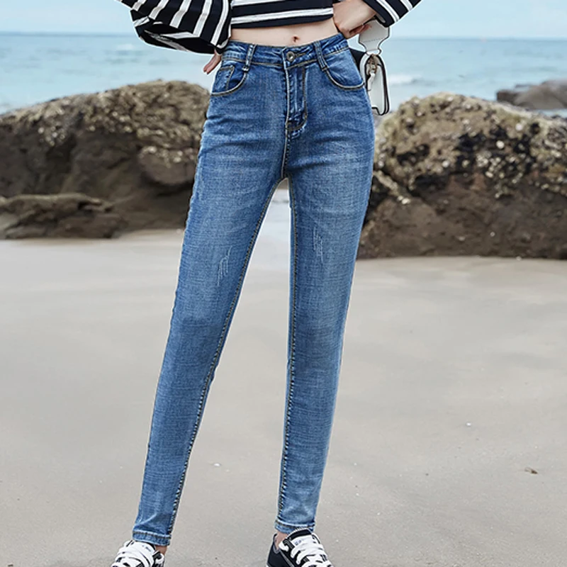 Promo Women's high-stretch jeans Fashion street Korean clothing Pencil pants trousers mom Ankle pants Plus size women's clothing Blue