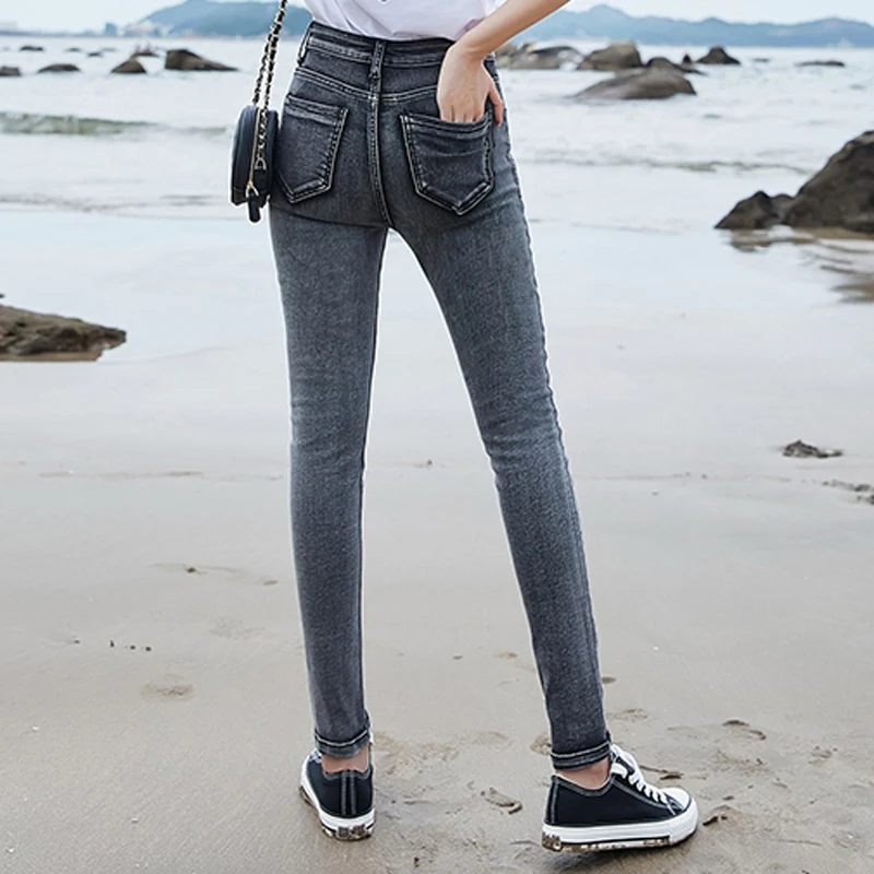 Images of Women's high-stretch jeans Fashion street Korean clothing Pencil pants trousers mom Ankle pants Plus size women's clothing Blue :