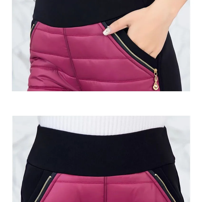 Images of 2020 Women Winter Down Pants Thick Warm Down Trousers Fashion New Casual Large size Pants Plus velvet Warm Women Trousers OK721 :